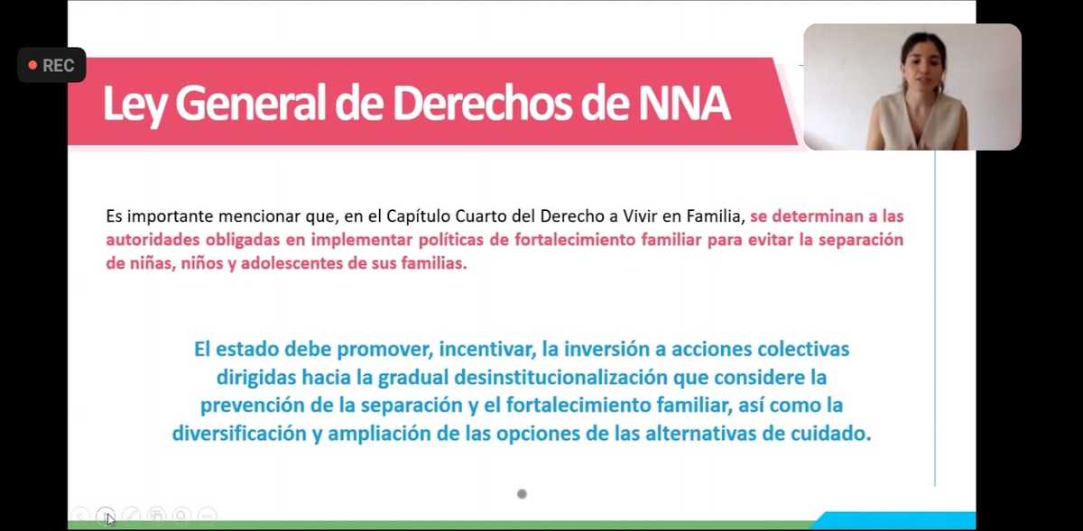 Daniela Cervantes, coordinadora nacional de abogacía de aldeas infantiles, destacó que si bien la Ley General de Derechos de los Niños, Niñas y Adolescentes establece que todos los niños en desamparo familiar requieren cuidados, entre ellos hogares de acogida, estos generalmente se encuentran limitados por presupuesto, supervisión y evaluación.