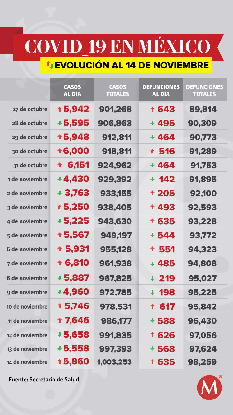 Durante la conferencia de coronavirus, Ricardo Cortés Alcalá, director general de Promoción de la Salud destacó que al corte de hoy se registraron en el sistema 635 nuevas muertes y 5 mil 860 nuevos casos de covid-19.