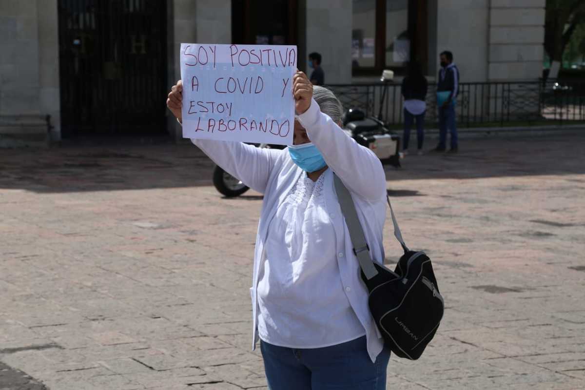 Alrededor de 20 médicos y enfermeras del Instituto Mexicano del Seguro Social (IMSS) y el Instituto de Seguridad y Servicios Sociales de los Trabajadores de la Salud (ISSSTE), integrantes de la Unión Nacional de Trabajadores de la Salud, se manifestaron en Plaza Juárez, donde demandaron incremento de salario, así como el mejoramiento del equipo para la atención del covid-19.