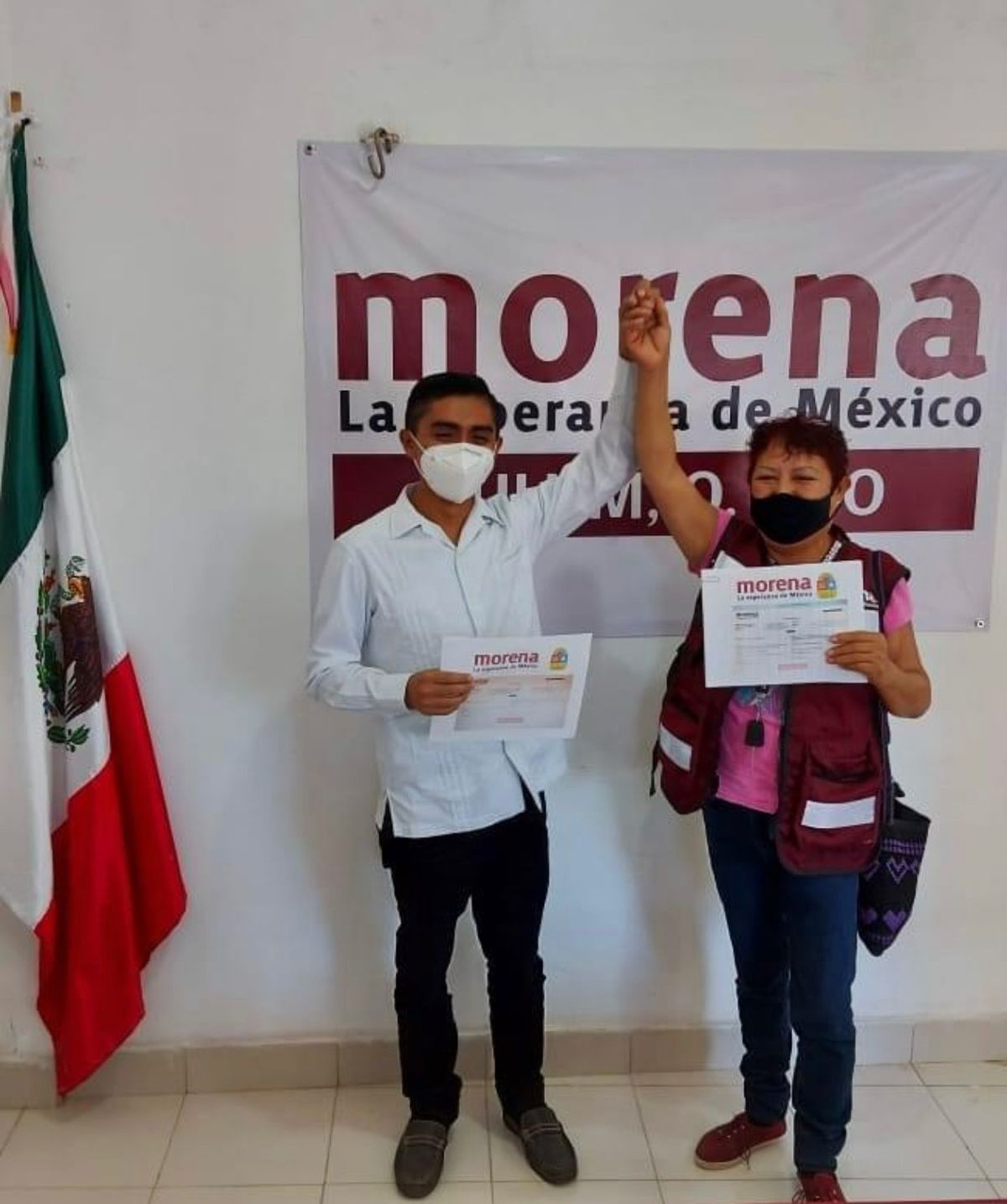 De acuerdo con algunas imágenes, la mujer ha participado en algunos eventos de Morena e incluso porta chalecos y cubrebocas con el logo y nombre del partido.