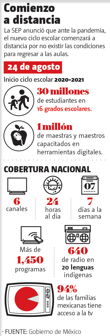 “Se trata de un esquema robusto, oficial, válido, que dará servicio a 30 millones de estudiantes de 16 grados escolares y en seis canales lograremos una amplia cobertura nacional. Quienes no tengan acceso a la señal tendrán radio, libros de texto gratuito, cuadernillos de trabajo y atención especial”.