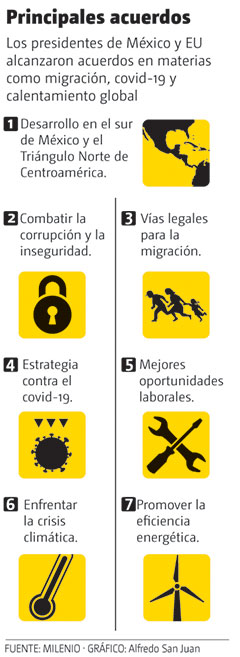 Asimismo, se comprometieron a desarrollar vías legales para la migración e impulsar políticas para que sea ordenada, segura y regular, además de promover un desarrollo económico equitativo y sostenible para países vecinos.