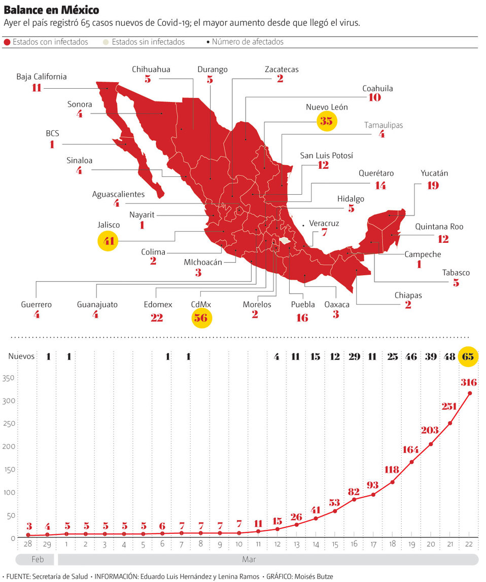 Por ahora, comentó Cortés Alcalá, en el país hay 316 casos positivos con coronavirus, de los cuales, tres se encuentran graves, y se tienen registrados dos decesos.