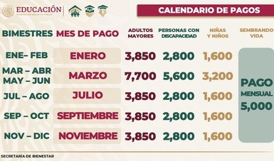 En tanto, quienes están inscritos en el Programa de Apoyo para el Bienestar de Niñas y Niños, Hijos de Madres Trabajadoras recibirán tres mil dos pesos por el mismos periodo.