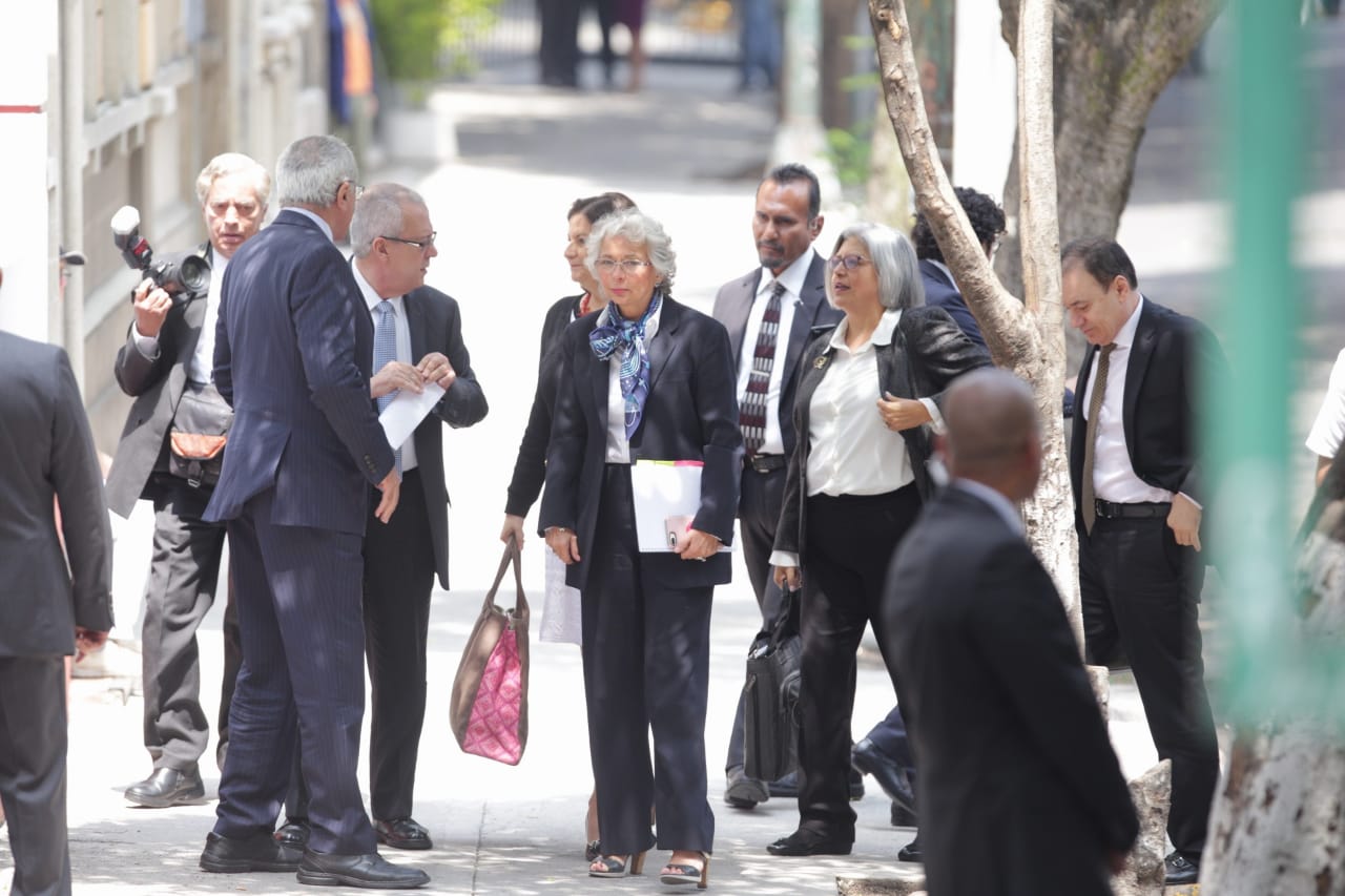 En medio de la protesta, han llegado al lugar integrantes del gabinete de López Obrador, entre estos Olga Sánchez Cordero, propuesta para Gobernación; Carlos Urzúa, de Hacienda; Graciela Ortiz, de Economía, y Marcelo Ebrard, de Relaciones Exteriores.