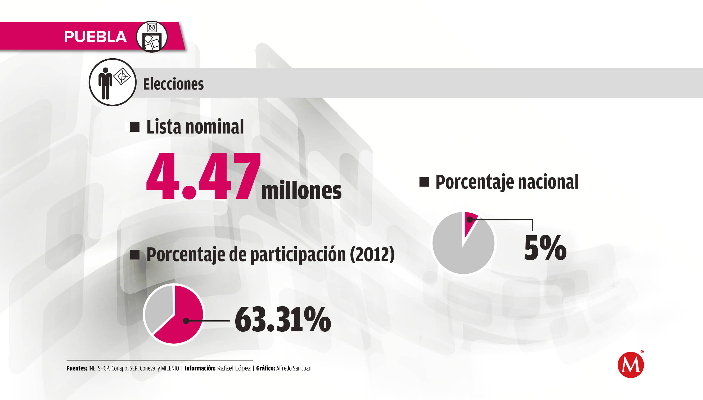 El próximo domingo, 4.47 millones de poblanos podrán votar, lo que representa el cinco por ciento de la lista nominal a nivel federal.