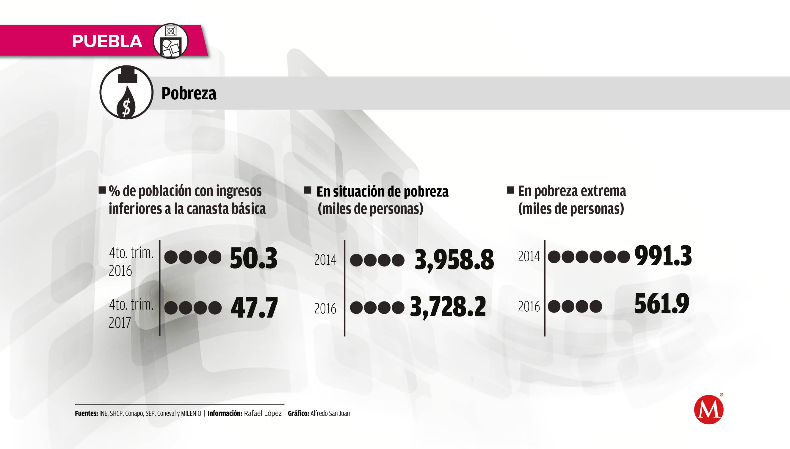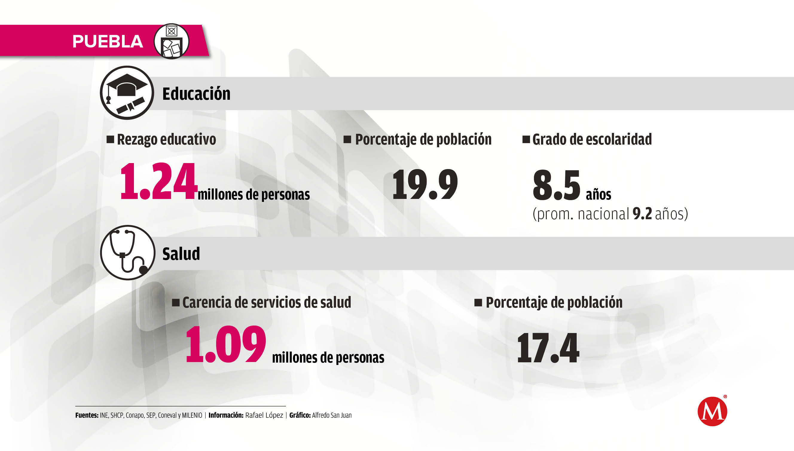 El rezago educativo en Puebla es de 1.24 millones de personas y el grado de escolaridad promedio es de 8.5 años, debajo del promedio nacional de 9.2 años.
