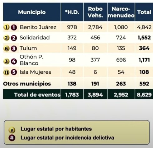En La Mañanera desde Cancún, Ojeda Durán señaló que los municipios con mayor incidencia delictiva en el estado son: