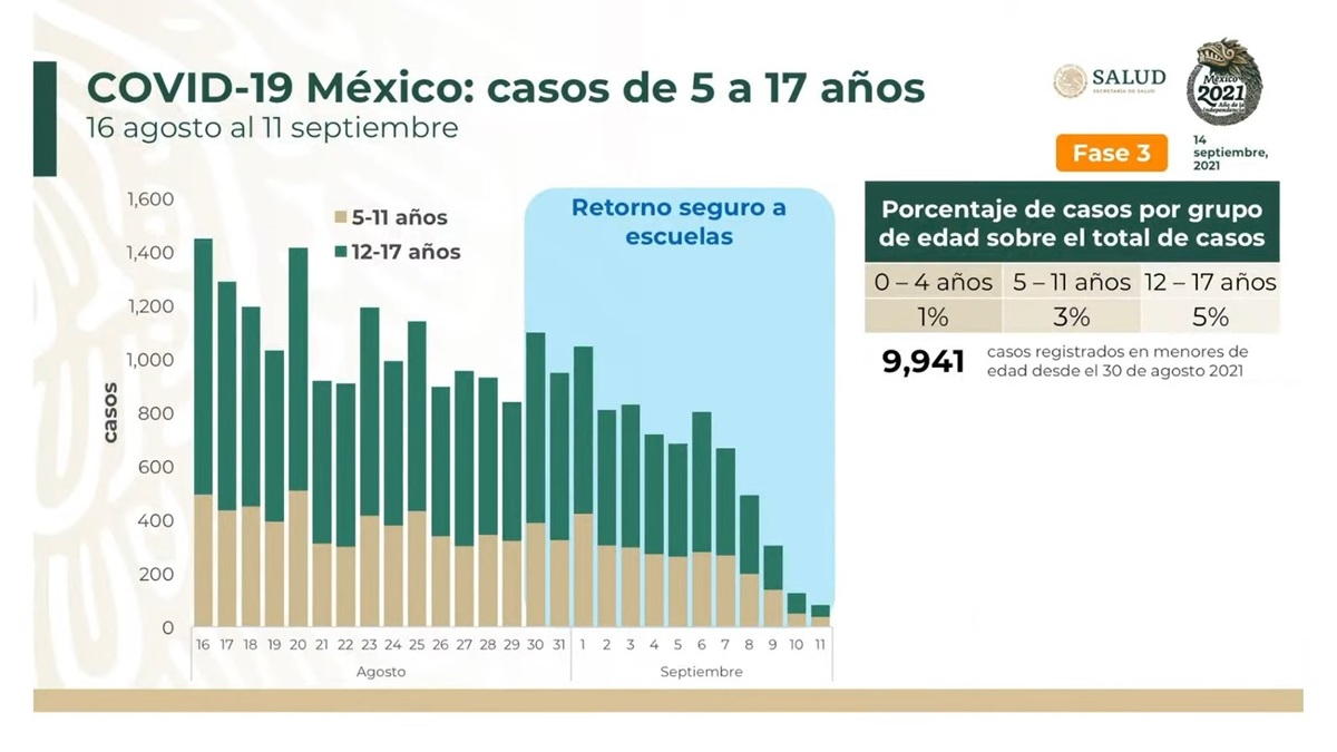 Tras el regreso presencial a clases el 30 de agosto, en el país se han registrado 9 mil 941 casos de covid-19 en menores de edad, informó la Secretaría de Salud.