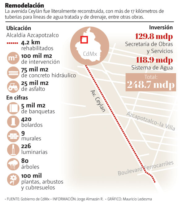 Con una inversión de 248.7 millones de pesos, de los cuales casi 130 millones los aportó la Secretaría de Obras y Servicios (Sobse) capitalina, y cerca de 119 millones el Sistema de Agua de Ciudad de México (Sacmex), en el contexto de un proyecto integral para rescatar la Zona Industrial Vallejo, la jefa de Gobierno, Claudia Sheinbaum, entregó obras de avenida Ceylán, en la colonia Ferrería, alcaldía Azcapotzalco.