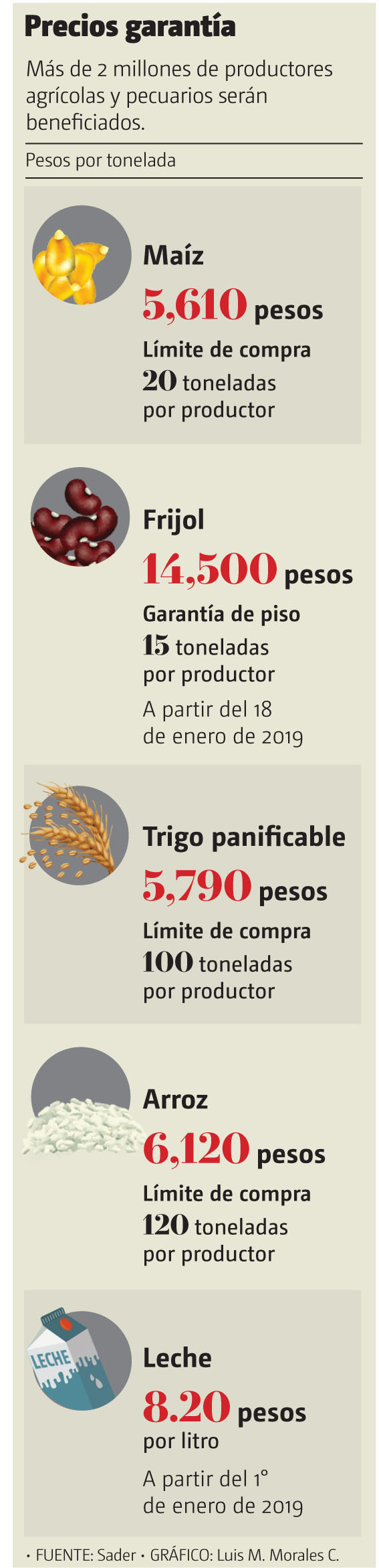 El presidente Andrés Manuel López Obrador dio a conocer los precios de garantía que se tendrán durante su administración para maíz, frijol, arroz y trigo, así como leche.