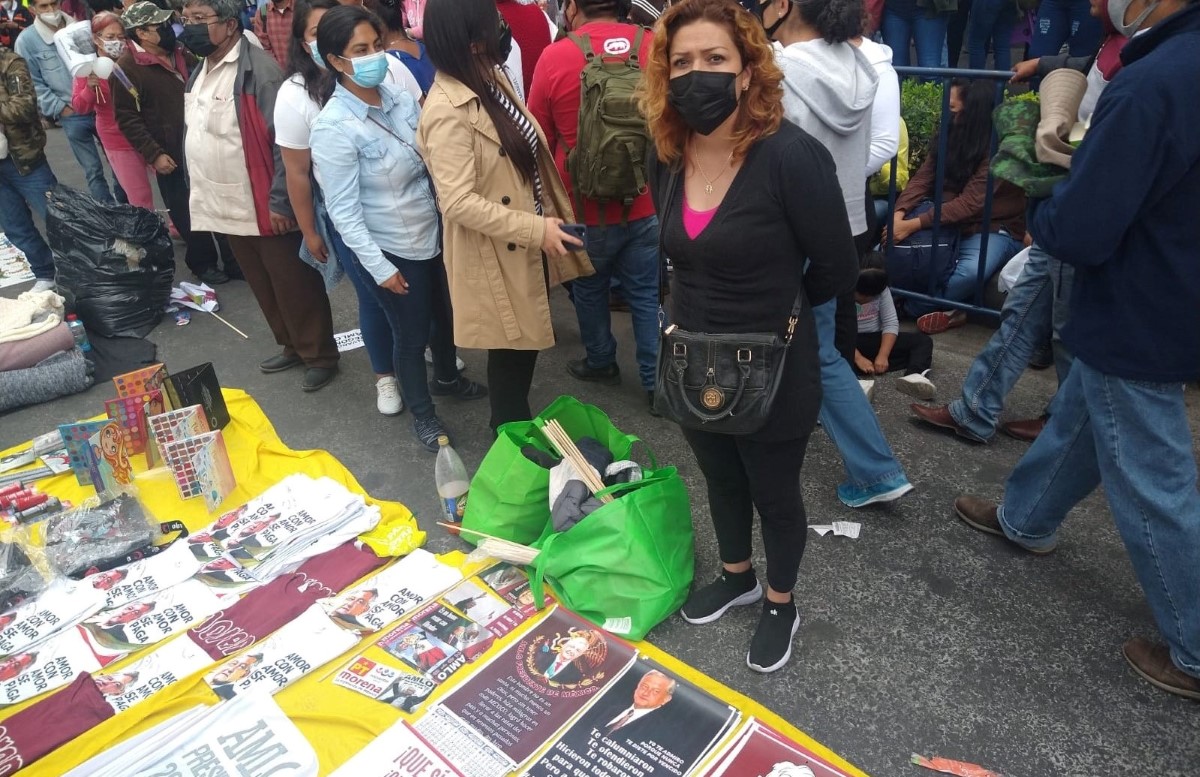 "La venta está muy bien a esta hora. Es que ya nos hacía falta porque nosotros nos dedicamos a todo esto, pero por la pandemia y todo esto no se podía. Nos afectó bastante el covid porque como ya no había eventos y nosotros nada más nos movemos en eventos de política de López Obrador.
