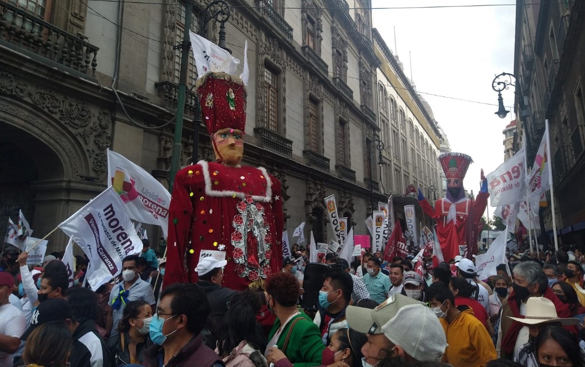 A lo que se sumó el paso de carros alegóricos, bandas de música y enormes figuras del presidente Andrés Manuel López Obrador.