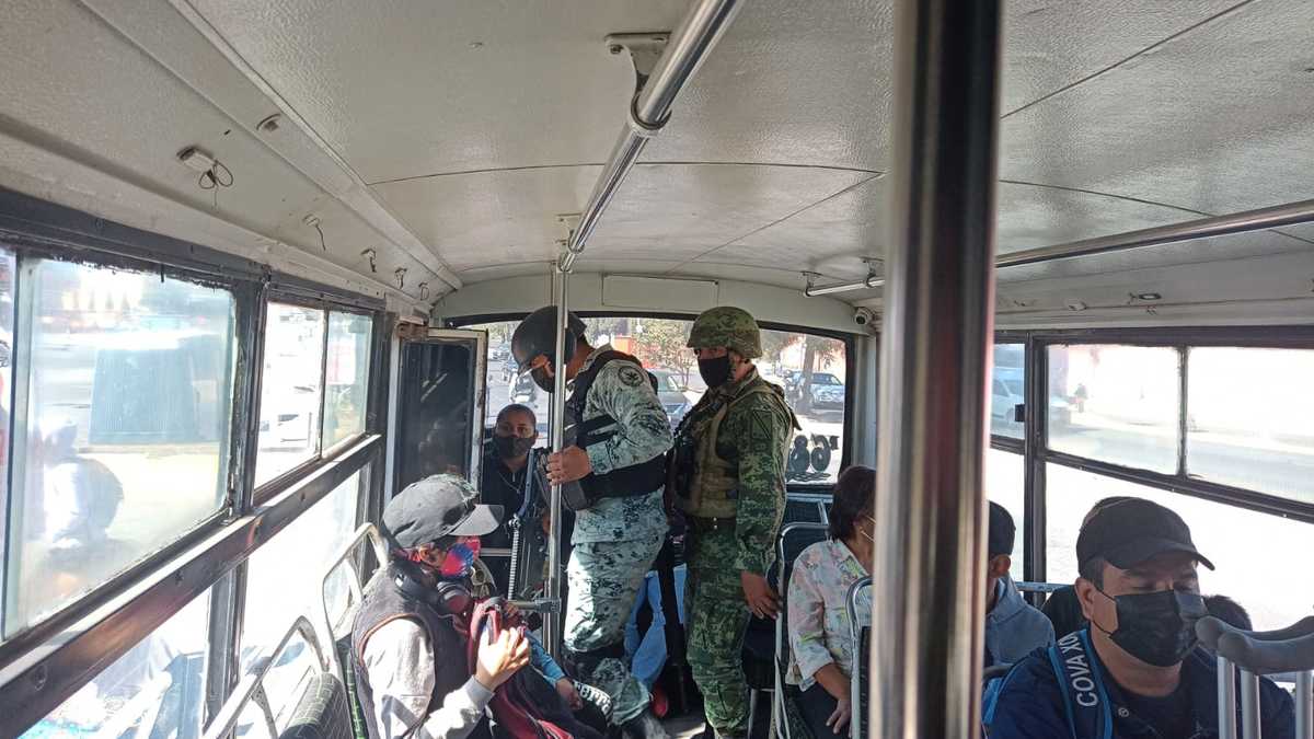 A través de diversas fotografías, se pueden observar a los elementos de la VI Región Militar haciendo recorridos por varias calles, a bordo del transporte público, en 'tianguis' de las zonas y con la ciudadanía en general en el operativo de este martes.