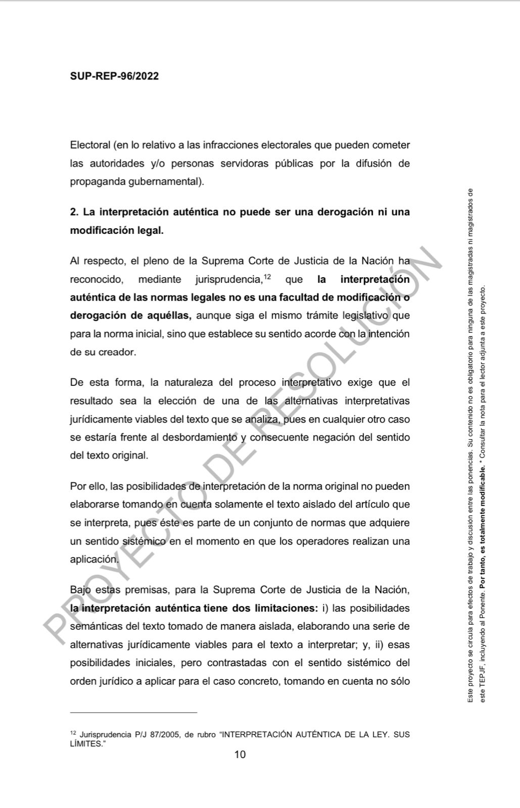 El Tribunal Electoral del Poder Judicial de la Federación (TEJF) votará esta semana un proyecto en el que declara que el decreto de Morena para reinterpretar la propaganda gubernamental, es inaplicable por ser contrario a la Constitución y a las jurisprudencias de la Suprema Corte de Justicia de la Nación (SCJN), porque está fuera de tiempos legales y porque una interpretación no deroga leyes constitucionales.