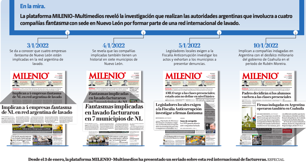 El pasado lunes 3 de enero, la plataforma MILENIO-Multimedios reveló la investigación que realiza la justicia argentina que involucra a cuatro compañías fantasma con sede en Nuevo León por presuntamente formar parte de la red internacional que lavó 70 millones de dólares de Daniel Muñoz, ex secretario personal de los ex presidentes de la nación sudamericana, Néstor Kirchner y Cristina Fernández de Kirchner.