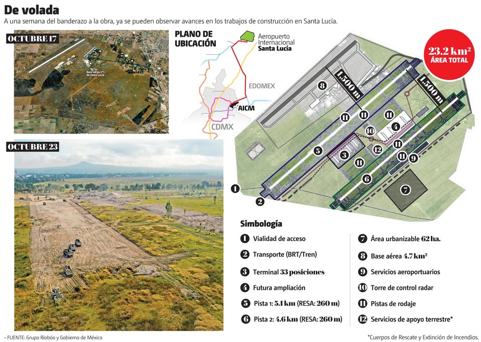 No obstante, MILENIO publicó el pasado 22 de octubre que propietarios de terrenos contiguos a la base aérea obtuvieron la suspensión definitiva para que no se puedan realizar las obras dentro de lo que se conoce como Zona de Amortiguamiento Acústico.