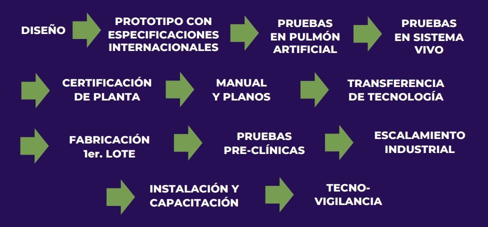 Fue desarrollado en el Centro de Ingeniería y Desarrollo Industrial (Cidesi), un centro público de investigación del Conacyt, que posee un microcontrolador capaz de calcular y aplicar la presión necesaria durante los ciclos de ventilación de los pacientes.