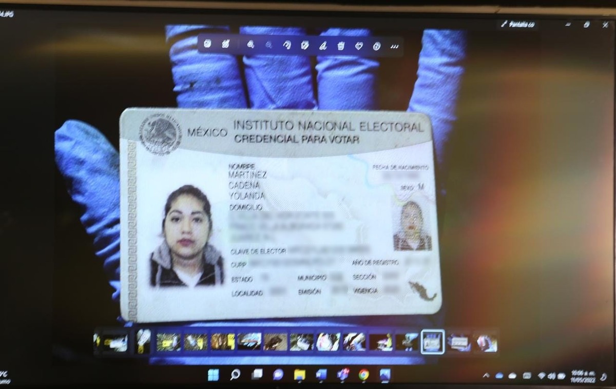 Además se localizó una bolsa de mano cuyo interior guardaba ropa, un teléfono celular, una identificación oficial, una tarjeta de débito Banorte y un bote blanco con una etiqueta "Control 24E" del cual no se ha determinado su contenido.