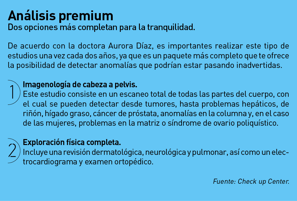 A los 40 años En esta etapa, además de realizar los análisis ya mencionados, Ruz Cervera recomienda hacer los siguientes estudios: