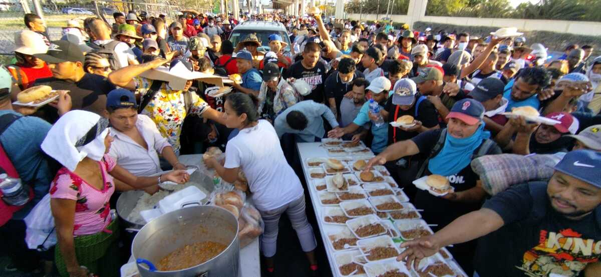 Después de iniciar un conteo para determinar que son 850 los participantes, los migrantes sudamericanos y centroamericanos iniciaron con una oración en plena avenida Colón y Villagrán, que encabezó el pastor Enrique Torres.