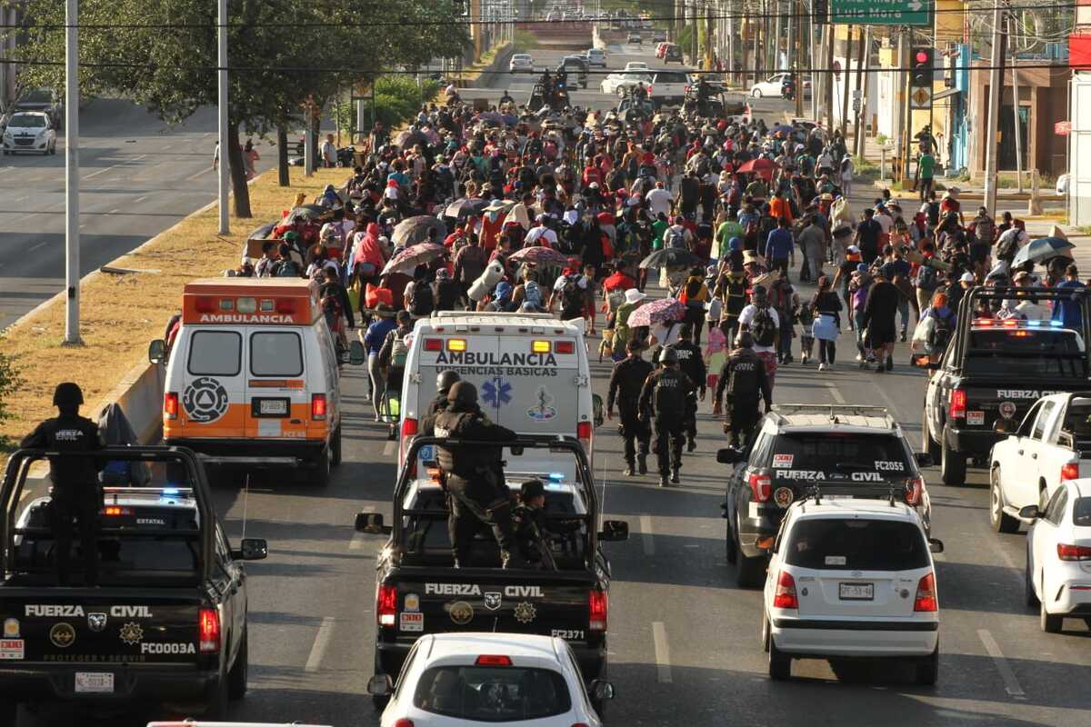 Ésta es la segunda marcha de migrantes en menos de una semana, luego de que el jueves pasado otro grupo de unos 300 venezolanos salieron de la central de autobuses con rumbo a Piedras Negras.