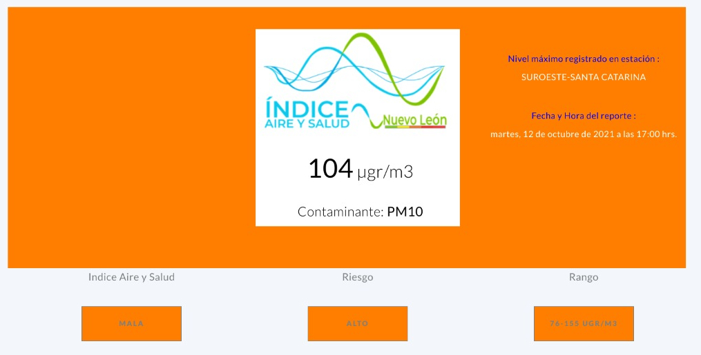Santa Catarina, San Pedro y la zona de Universidad fueron las que registraron los peores números, mientras que San Nicolás, Cadereyta y Juárez presentaron índices de contaminación moderados.