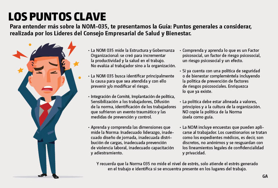 Y recuerda que la Norma 035 no mide el nivel de estrés, solo atiende el estrés generado en el trabajo e identifica si se encuentra presente en los lugares del trabajo.