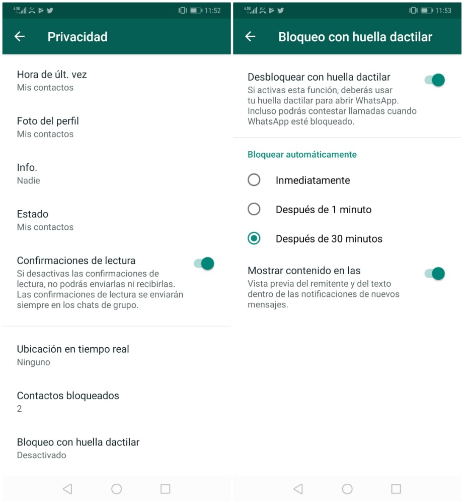 Esta función, que ya estaba disponible para teléfonos iPhone mediante Touch ID, permite establecer un doble nivel de seguridad, ya que para acceder a WhatsApp no bastará con haber desbloqueado el celular, sino que será necesario volver a identificarse.