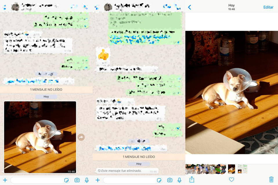 Aunque ya ha pasado más de un año desde que WhatsApp introdujo una herramienta para eliminar los mensajes, la función todavía tiene una falla que hace que las fotos y los videos que reciben los usuarios de iPhone no se puedan borrar de sus galerías. A pesar de ello, la persona que haya mandado la foto y después crea haberla borrado, verá en su lugar la frase 'Este mensaje fue eliminado'.