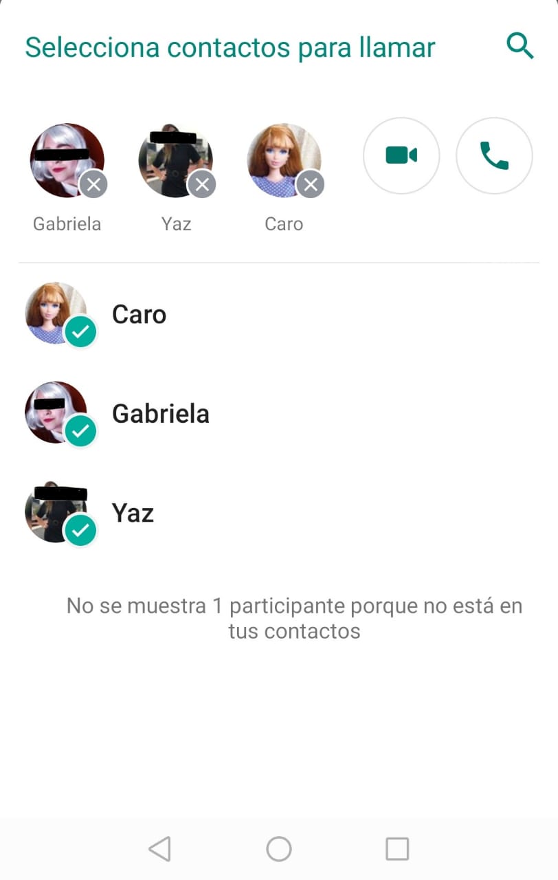 Para esto, la app incorporó el botón de llamada en los chats grupales, y al presionarlo, aparecerán los miembros del grupo y podrás seleccionar hasta a cuatro de ellos para realizar o una llamada normal, o una videollamada para hablar con ellos al mismo tiempo