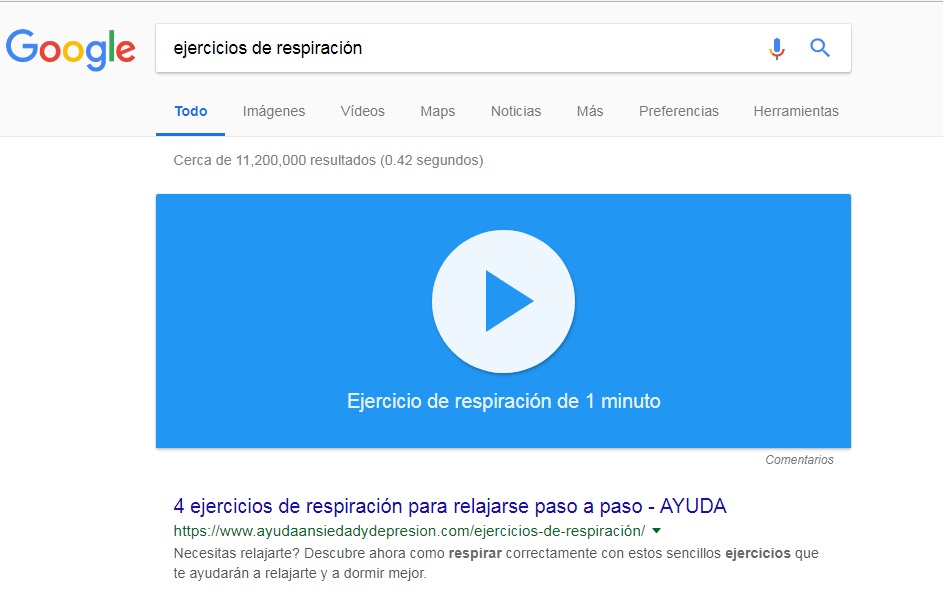 Es normal estresarse constantemente en el trabajo, por eso al buscar "ejercicios de respiración", Google te ayudará a relajarte con un pequeño ejercicio de un minuto el cual te guiará para olvidarte de tus preocupaciones.