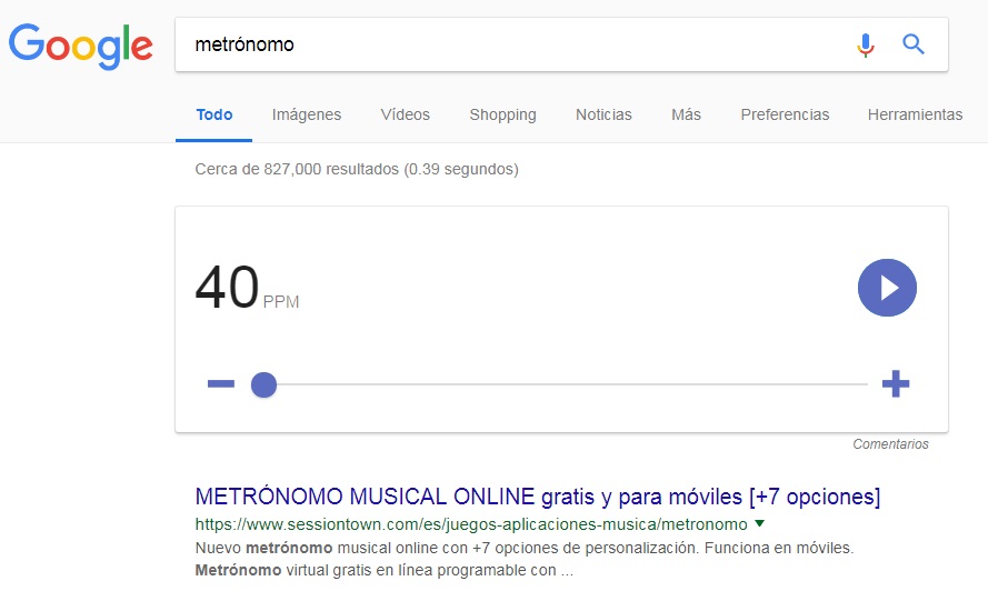 Esta útil herramienta musical servirá a todos aquellos que quieren practicar con su instrumento favorito sin importar donde se encuentren. Sólo deberás buscar la palabra "metrónomo" para encontrar su versión digital directamente en Google.