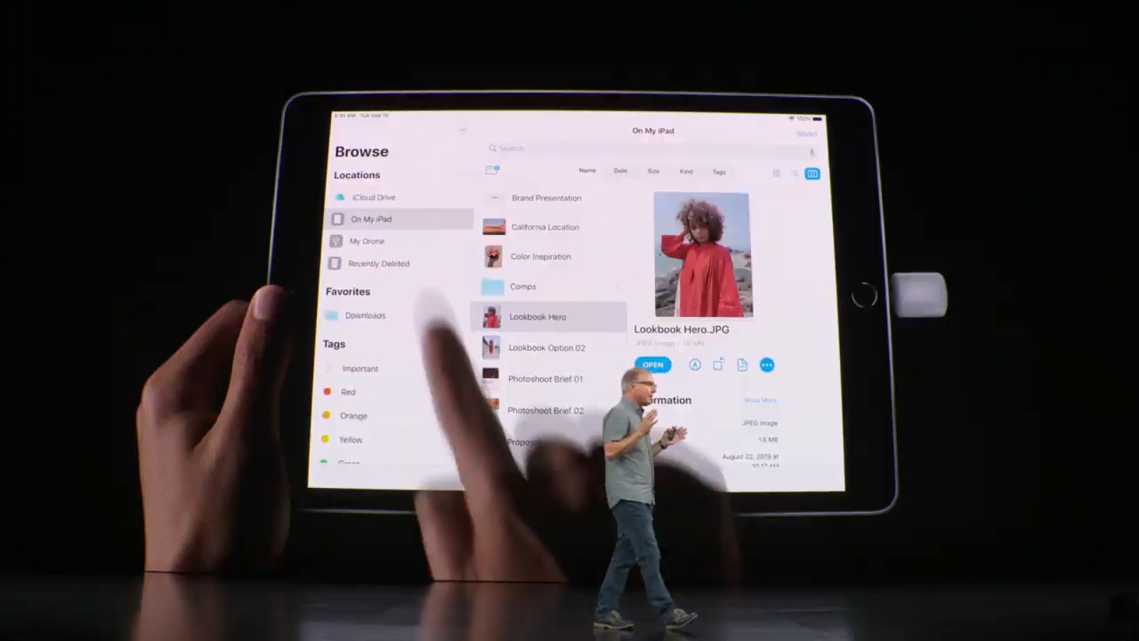 Joswiak explica que el nuevo iPadOS, el sistema operativo para las tablets, está diseñado para hacer el multitask más fácil en las iPad.