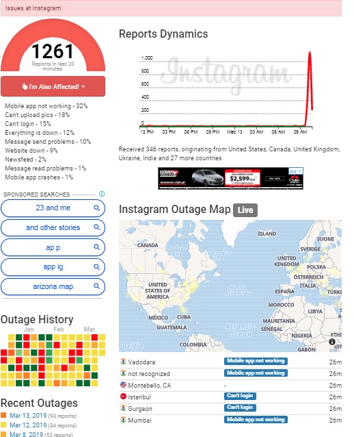Minutos después de que empezaran los reportes de fallas para entrar a las cuentas de Facebook, sucedió lo mismo con los usuarios de Instagram. De acuerdo con el sitio Outage Report, la plataforma comenzó a fallar minutos después de las 10 de la mañana, afectado principalmente a usuarios de Estados Unidos, Reino Unido, Brasil y partes de México y Europa.