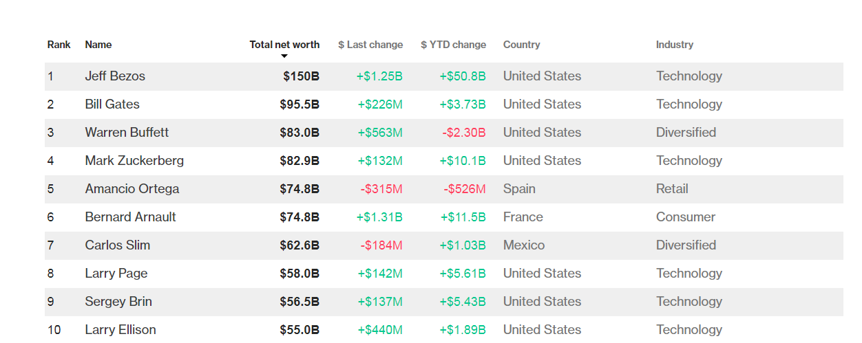 Según el índice Bloomberg Billioners, que monitorea en tiempo real la fortuna de los 500 millonarios más importantes del mundo, Bezos logró registrar una fortuna valuada en más de 150 mil millones de dólares, cifra superior al récord impuesto por Bill Gates en 1999.