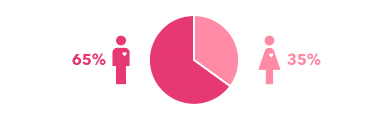 Otro dato interesante es que sólo el 41 por ciento de usuarios de internet que están solteros dijeron usar las aplicaciones de citas en línea y la mayor población es masculina, pues según las cifras el 65 por ciento de los usuarios son hombres, lo que representa que hay dos por cada mujer.
