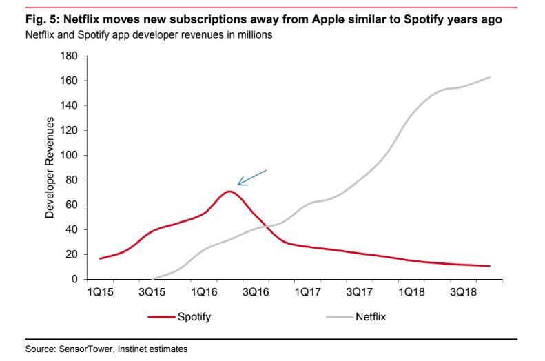 El uso de Netflix representó a finales de 2018 uno de los mayores ingresos de la App Store y según datos de la empresa analista SensorTower, sin la comisión que le daba Netflix, Apple podría estar perdiendo cerca de 256 millones de dólares al año.