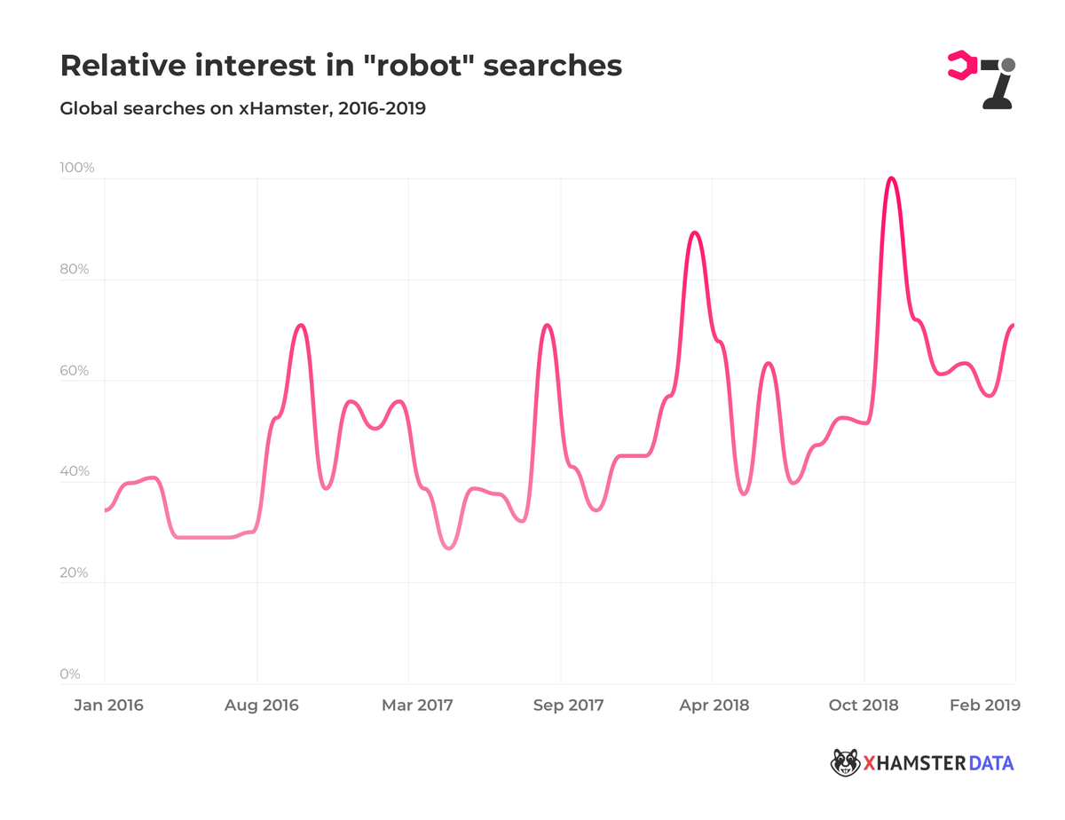 Para 2018, el incremento fue de 72 por ciento en relación con el año anterior: es decir, hubo 36 mil 709 personas que buscaron videos de sexo con robots.