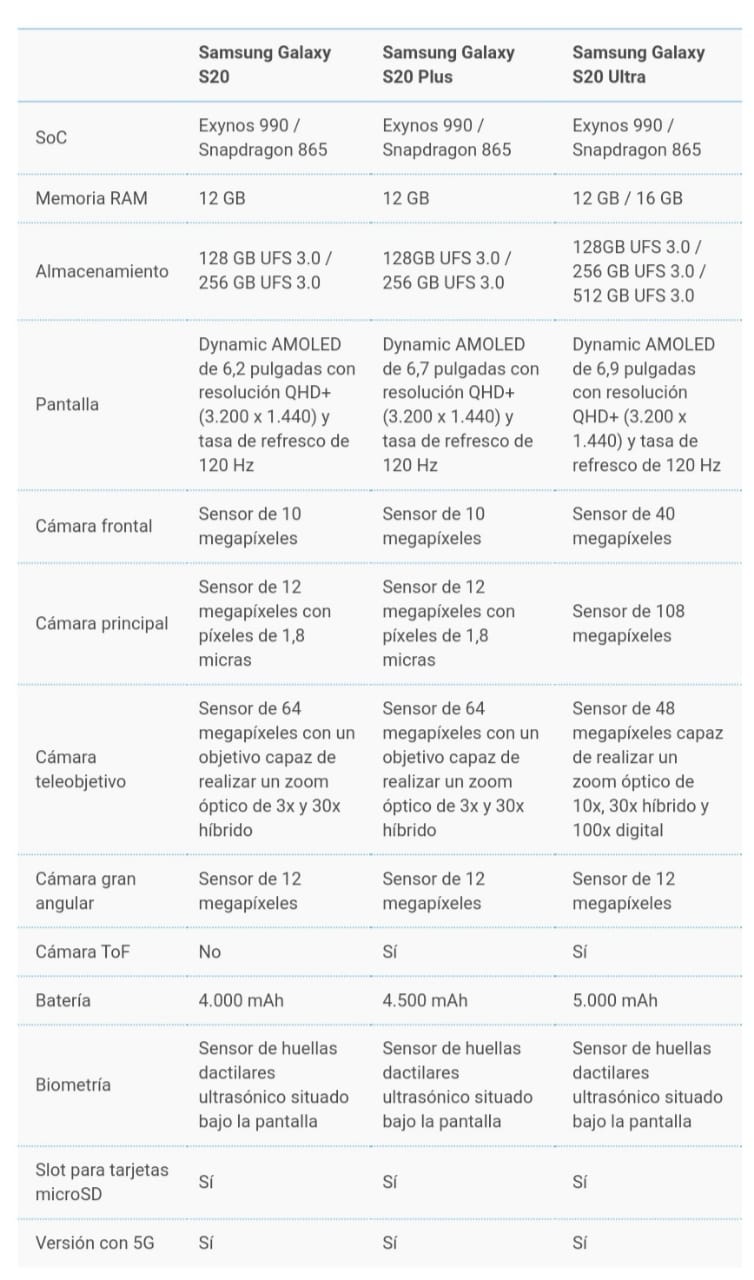 Samsung presentó en su evento Galaxy Unpacked 2020, en la ciudad de San Francisco, California, sus nuevos celulares Galaxy S20 , Galaxy S20 Plus y Galaxy S20 Ultra, que entre sus principales características permiten grabar video hasta en 8K y modos de zoom integrados con inteligencia artificial que permiten hasta un acercamiento de 100x en la versión más premium de los dispositivos.