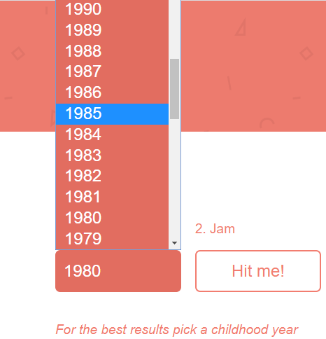 Es una herramienta sencilla de usar y que despertará tus mejores recuerdos. Para escuchar canciones viejísimas sólo basta con entrar a su sitio web, seleccionar el año de tu preferencia, ya se en el que naciste, en el te casaste, o en el que te enamoraste por primera vez y dar click en el botón "hit me" que te llevará al apartado que te golpeará con las nostalgia de los recuerdos musicales del año que seleccionaste.