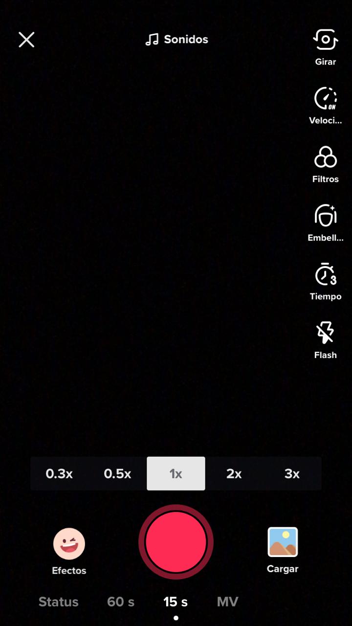 Pulsa la opción de "Añadir video" (es el botón que tiene el signo de "+" y se encuentra en medio de la pantalla de inicio). De lado superior derecho están varias funciones para grabar el clip; puedes seleccionar la velocidad, los filtros básicos y el tiempo de duración.