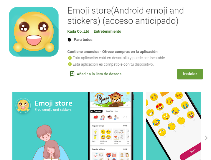 Se trata de una aplicación en periodo de pruebas para descargar stickers y sólo puedes acceder a ella desde la versión beta de Google Play, sin embargo, funciona a la perfección y puedes descargartus calcomanías por secciones.