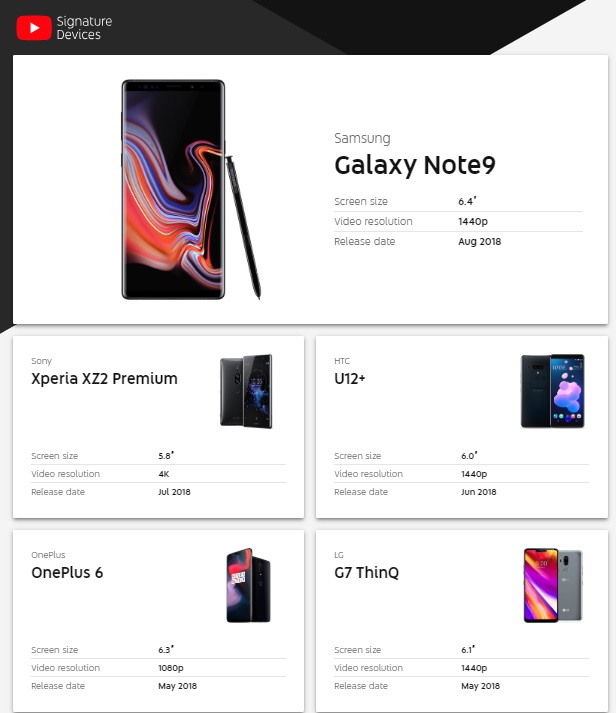 De acuerdo con un reporte de la plataforma de videos, los teléfonos que conforman su lista es porque combinan tecnologías que garantizan la reproducción adecuada de su contenido, por ejemplo, que soporten High Dynamic Range o HDR, Radio Digital Mundial para tener un audio de buena calidad, 360° para videos inmersivos, decodificador de 4K y usar los más recientes codecs de videos.