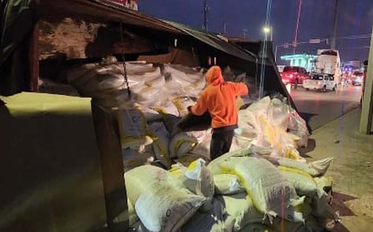Toneladas de alimento para ganado quedaron regadas sobre bulevar Santa Rita del fraccionamiento Urbivillas. -