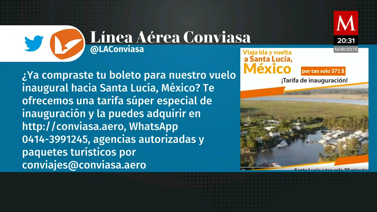 Conviasa promociona en sus redes sociales un vuelo desde Caracas al Aeropuerto Internacional Felipe Ángeles, ubicado en Santa Lucía, el próximo 21 de marzo.
