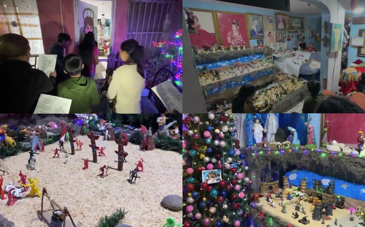 Una familia de la colonia Arboledas en Altamira mantiene viva la tradición de las posadas con un nacimiento monumental. -