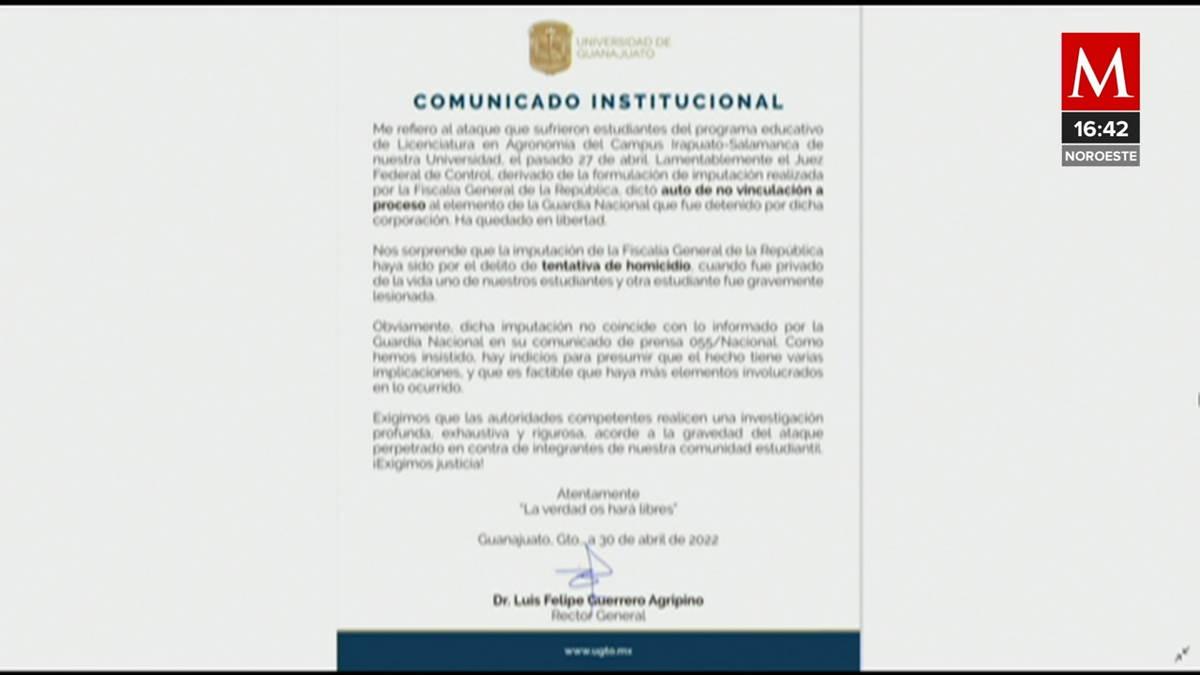 Rector de la UG reclama la no vinculación a proceso a elemento de la Guardia Nacional