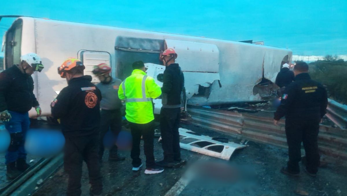 En Apodaca, Nuevo León, la volcadura de un autobús urbano registrada en la carretera Miguel Alemán dejó un saldo de ocho personas fallecidas. Entre las víctimas se reporta un menor de edad; autoridades ya investigan las causas del accidente. -