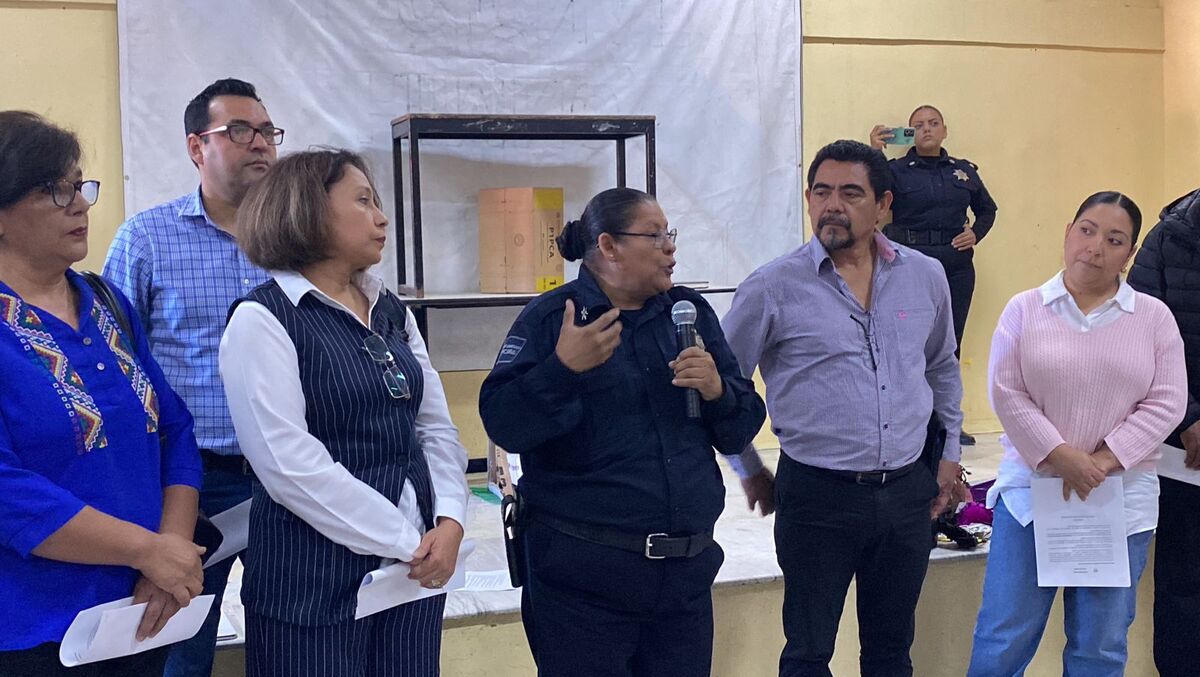 Padres de alumnos señalan que quien detonó el arma apuntó en el estómago a una niña, información que la comandante Blanca Perez aceptó no conocer. -